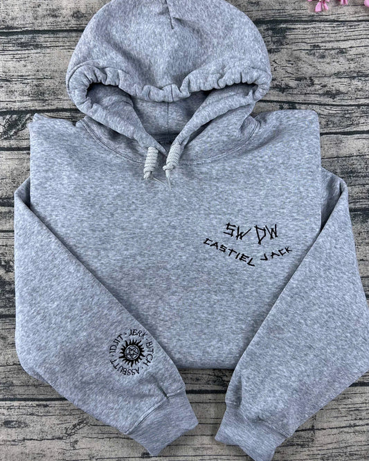 Supernatural Embroidered Sweatshirt – Dean, Sam, Castiel, Baby Car & Antipossession Symbol Hoodie – Fangirl Cosplay Jumper