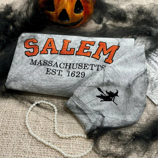 Salem Massachusetts Embroidered Hoodie – Halloween Spooky Crewneck Sweatshirt | Hocus Pocus Sweatshirt Gift for Him