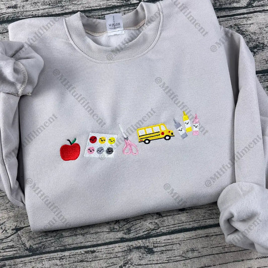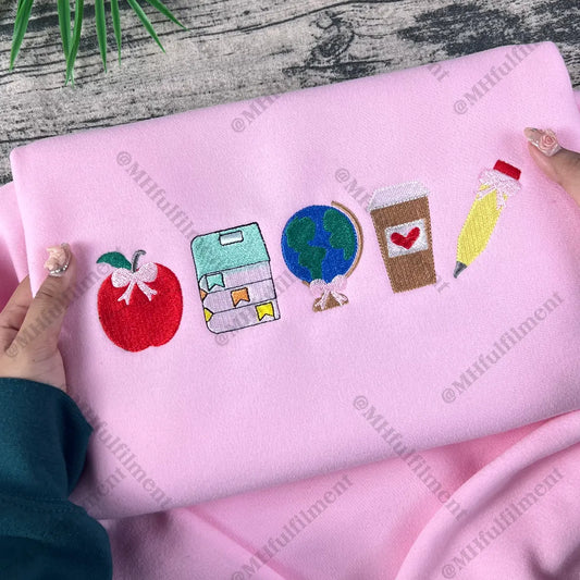 Embroidered Teacher Life Crewneck Sweatshirt β Cute Teacher Icons, Teacher Appreciation Gift, Cozy Teacher Pullover