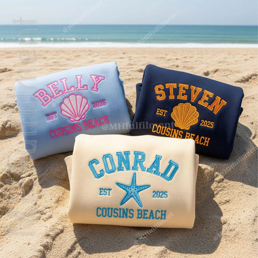 Cousins Beach Embroidered Shirt β The Summer I Turned Pretty Inspired Tee, Y2K Coastal Embroidery Crewneck Sweater for Summer Vibes