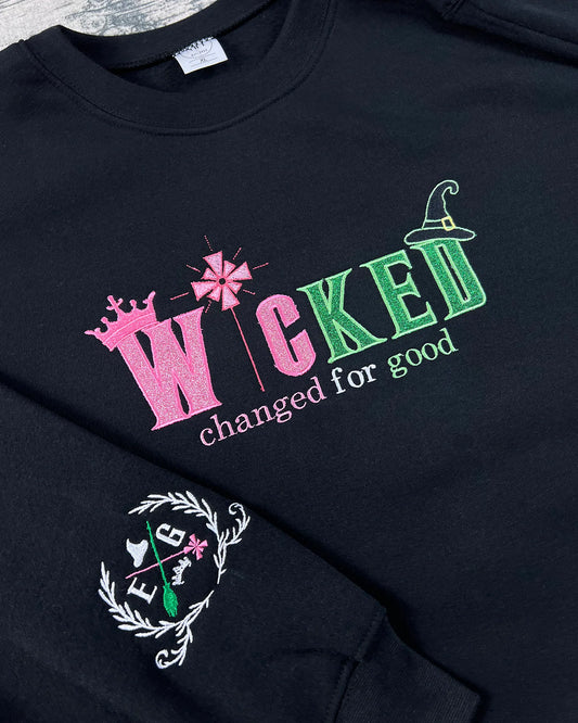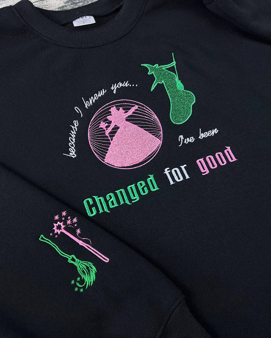 Wicked Changed For Good Embroidered Sweatshirt – Pink & Green Musical Hoodie, Elphaba and Glinda Halloween Gift