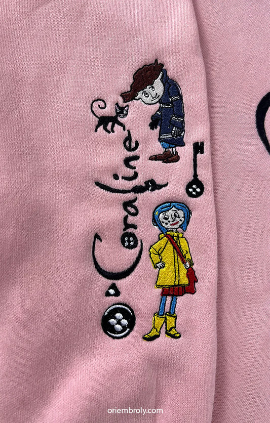 Coraline & Wybie Embroidered Sweatshirt – Halloween Couple Gift, Coraline Crewneck for Fall, Valentine & Anniversary Sweatshirt