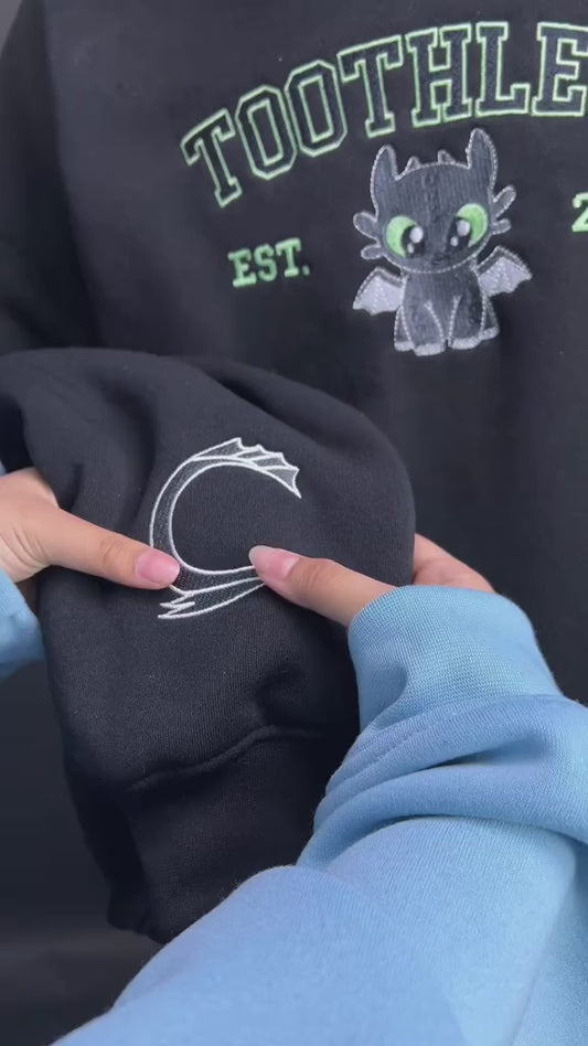 Toothless and Light Fury Couple Embroidered Sweatshirt, Cute Dragon Shirt Hoodie, HTTYD Gift for Friends or Family, Fantasy Movie Shirt