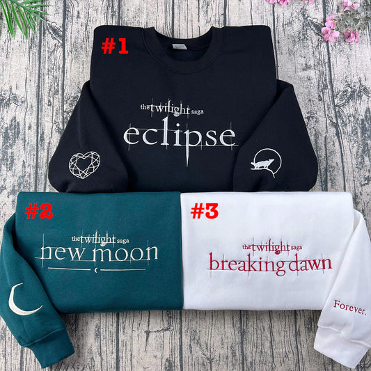 Twilight Embroidered Sweatshirt – Bookish Crewneck – Vampire Aesthetic – New Moon Eclipse Breaking Dawn Gift