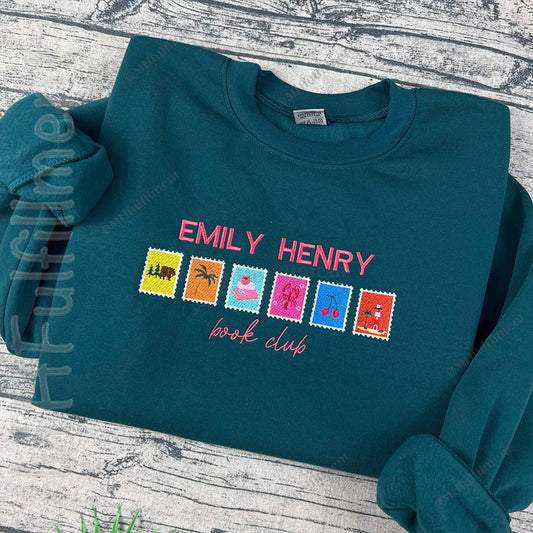 Emily Henry Embroidered Sweatshirt – Beach Read, Happy Place, Funny Story Bookish Crewneck – Great Big Beautiful Life Stamp Design – Book Lover Gift