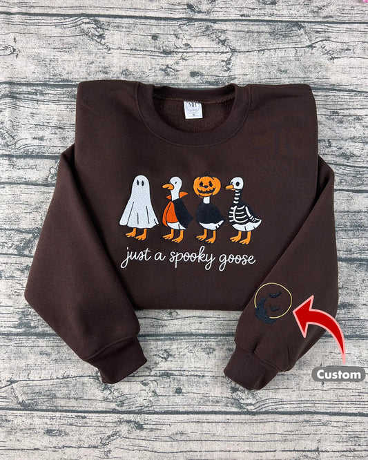 Embroidered Just A Spooky Goose Sweatshirt, Spooky Duck Sweatshirt, Halloween Sweatshirt, Ghost Duck Hoodie, Halloween Duck Lover Gift