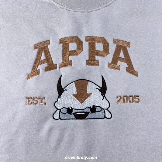 Appa Embroidered Sweatshirt – Avatar The Last Airbender Crewneck, Flying Bison Anime Sweater, Cosplay Gift for Fans