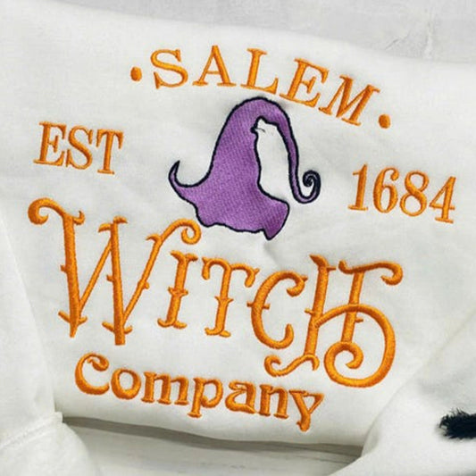 Salem Witch Embroidered Sweatshirt – Vintage Halloween Crewneck | Spooky Season Witch Hoodie for Women