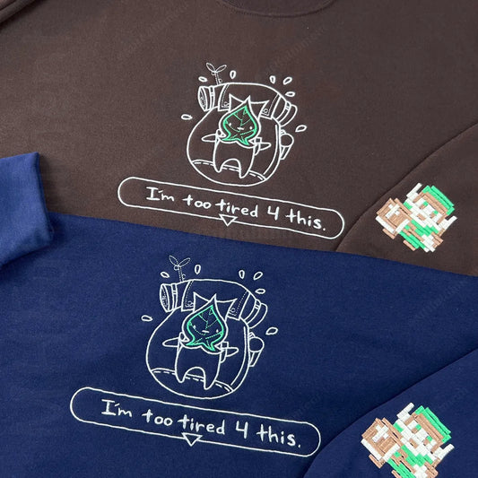 Too Tired 4 This Korok Embroidered Sweatshirt – Zelda Gamer Gift – Retro Game Inspired Unisex Jumper