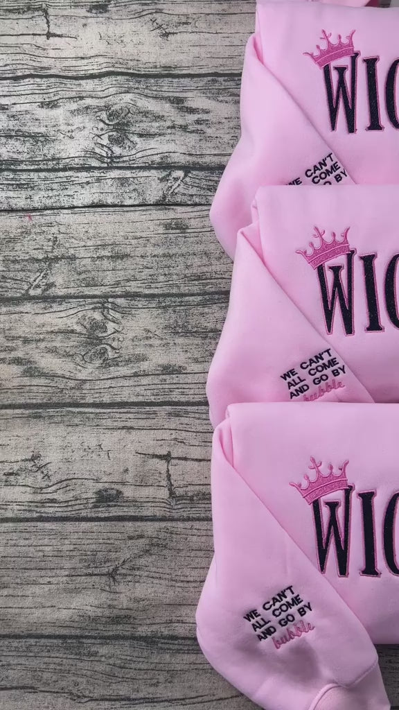 Inspired by the iconic story of two powerful witches, this crewneck features a beautifully detailed appliqué embroidery design – perfect for fans who cherish the magical friendship between Elphaba & Glinda. Soft, cozy, and uniquely crafted, it’s a must-have for any fantasy or theater lover.