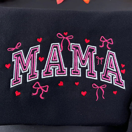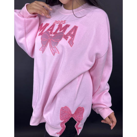 Personalized Mama Side Bow Embroidered Sweatshirt