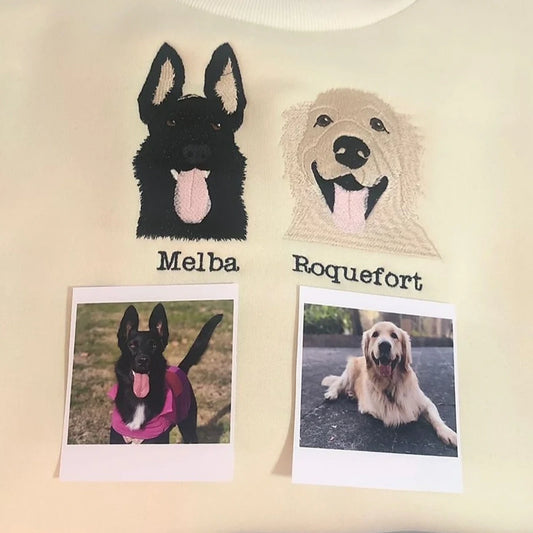 Custom Dog Face Embroidered Sweatshirt - Personalized Pet Portrait Gift
