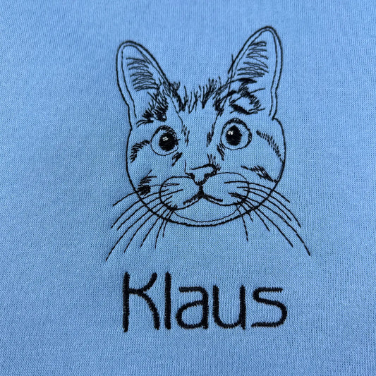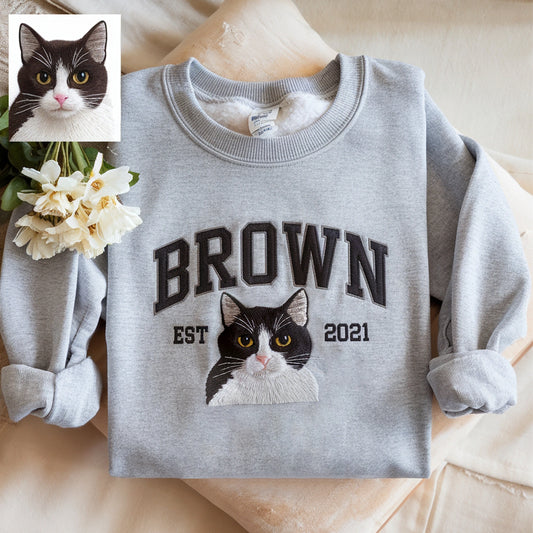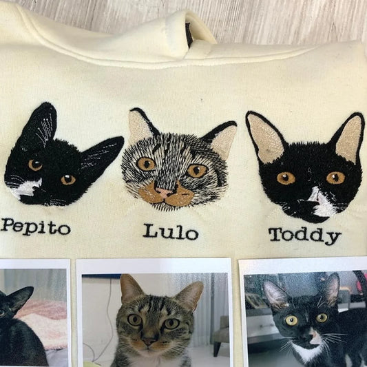 Custom Embroidered Cat Sweatshirt - Personalized Pet Portrait