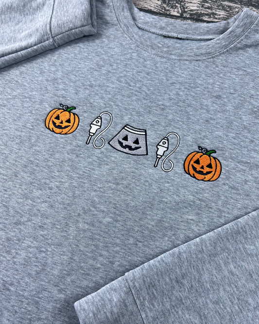 Halloween Embroidered Sweatshirt β Cute Pumpkin Ghost Crewneck, Spooky Season Fall Sweater, Trick or Treat Shirt