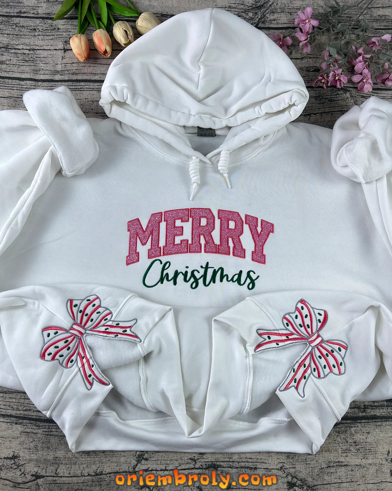 Celebrate the warmth and magic of the holiday season with our Merry Christmas Bow Embroidered Sweatshirt.
