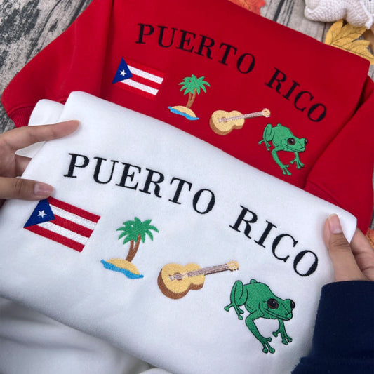 Puerto Rico Embroidery Sweatshirt | Boricua Taino Flag Crewneck