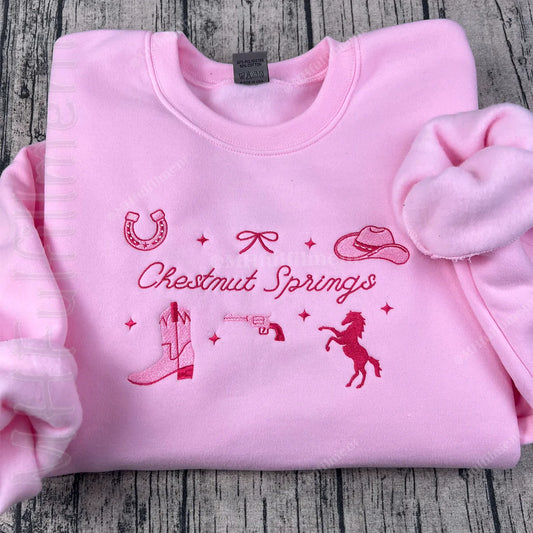 Embroidered Chestnut Springs Sweatshirt - Elsie Silver Cowboy Romance Book Hoodie, BookTok Merch, Custom Embroidered Bookish Gift