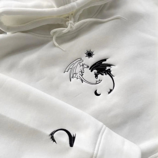 Night Fury and Light Fury Embroidered Hoodie β Toothless and Light Fury Sweatshirt β HTTYD Couple Gift β Fantasy Dragon Shirt β How to Train Your Dragon Hoodie