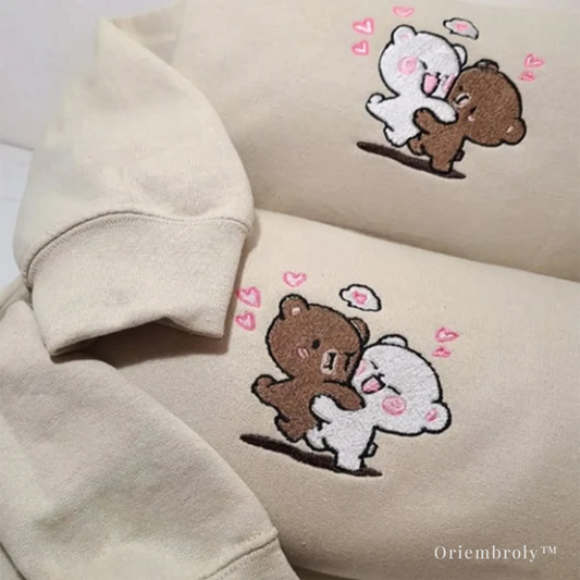 Milk & Mocha–Style Bear Couple Embroidered Crewneck Sweatshirt – Cute Love Gift