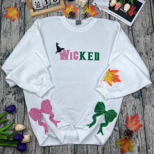 Wicked Embroidered Sweatshirt β Cozy Witch Crewneck, Halloween Wicked Hoodie, Broadway Musical Gift, Wizard & Witch Style Sweater