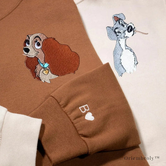 Custom Romantic Dog Embroidered Couple Crewneck Sweatshirt Set