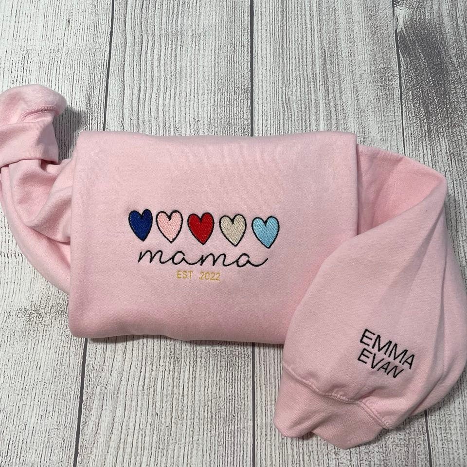 Custom Embroidered Mama Sweatshirt with Kids Name on Sleeve