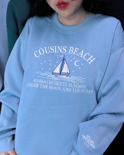 Step into summer nostalgia with our Cousins Beach Embroidered Sweatshirt, inspired by The Summer I Turned Pretty. Featuring delicate embroidery and a cozy unisex fit, this TSITP sweatshirt is perfect for fans who love Conrad Fisher, Team Conrad, and the iconic Cousins Beach.