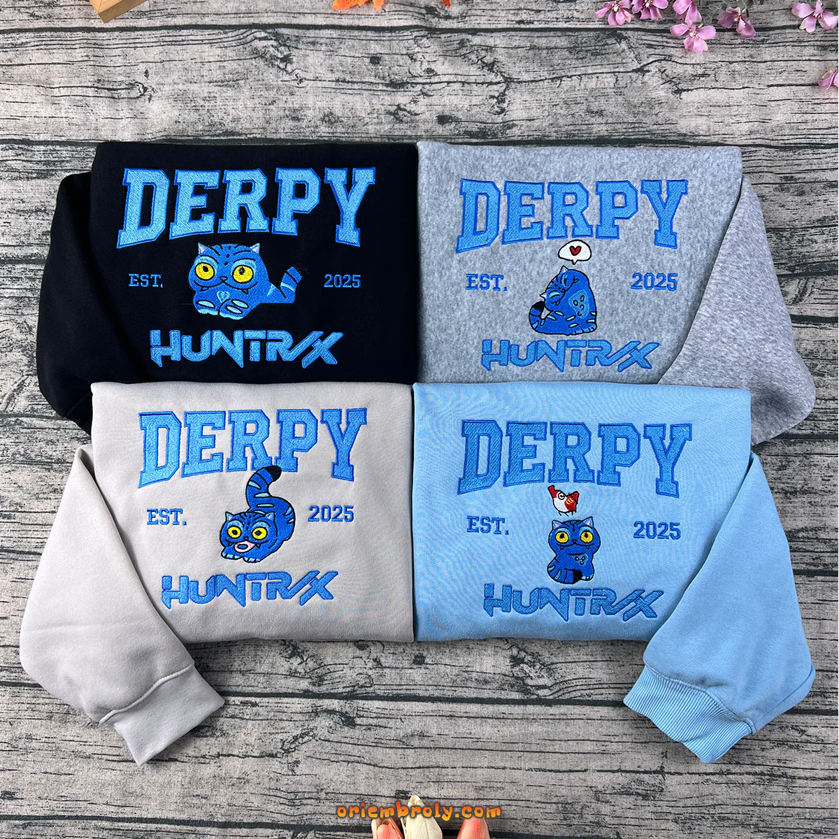 Derpy Huntrx Embroidered Sweatshirt, Derpy Cat Sweater EST. 2025, Funny Embroidery Unisex Pullover