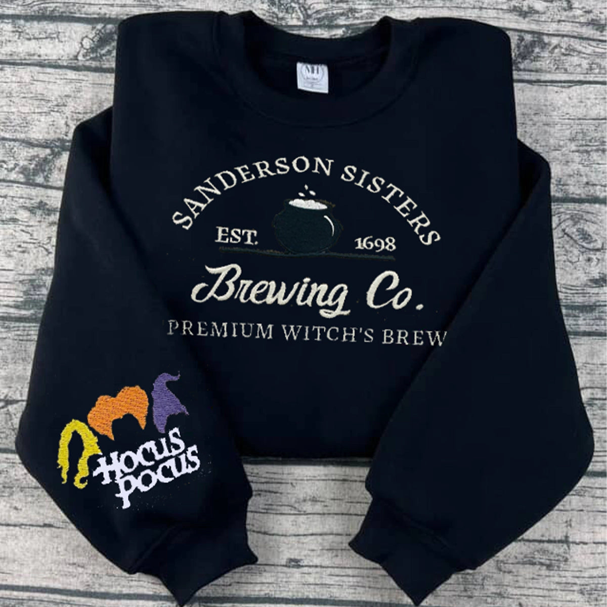 Embroidered Halloween embroidery sweatshirt/Spooky, sleeve hocus pocus, ghost, Y2K Style Embroidered Crewneck| Sanderson sisters brewing co