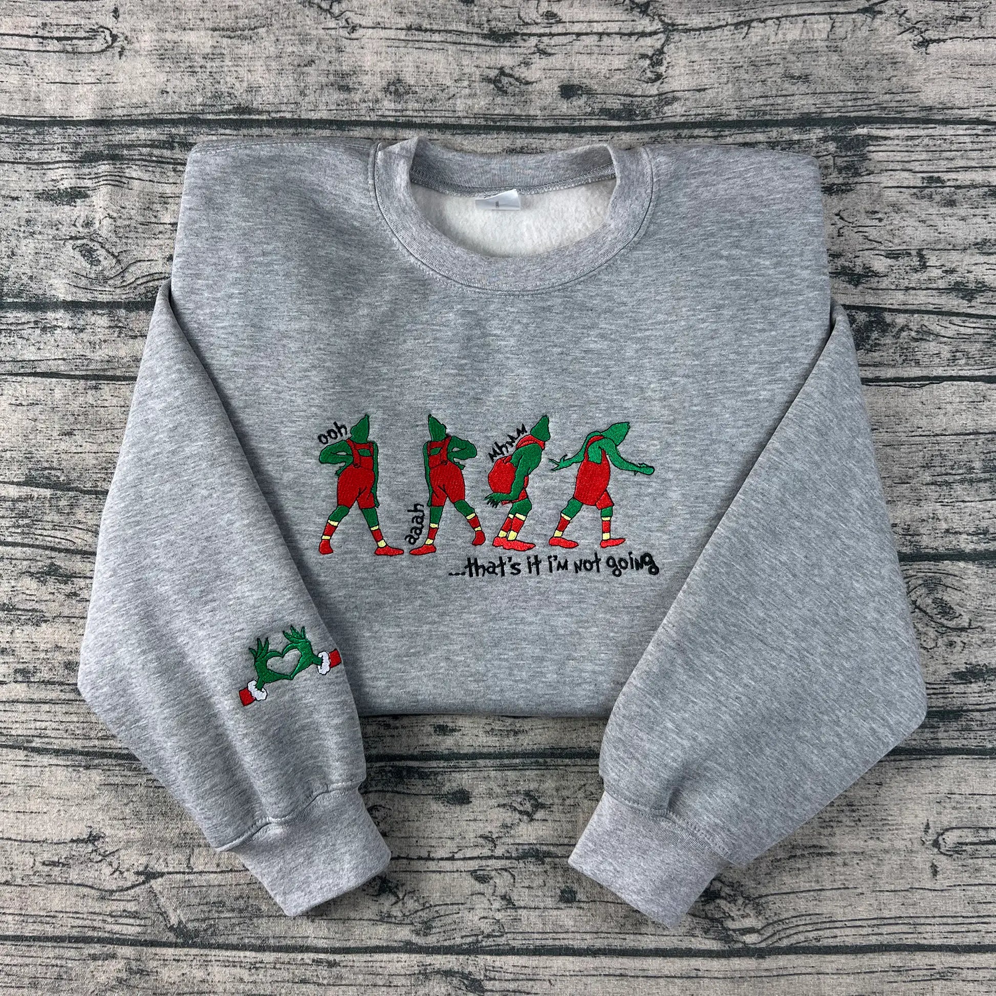 Crafted with flat-thread embroidery (no glitter, no hand stitching), this sweatshirt keeps things simple yet full of character — ideal for lounging at home, sipping cocoa, or making everyone at the Christmas party laugh without saying a word.