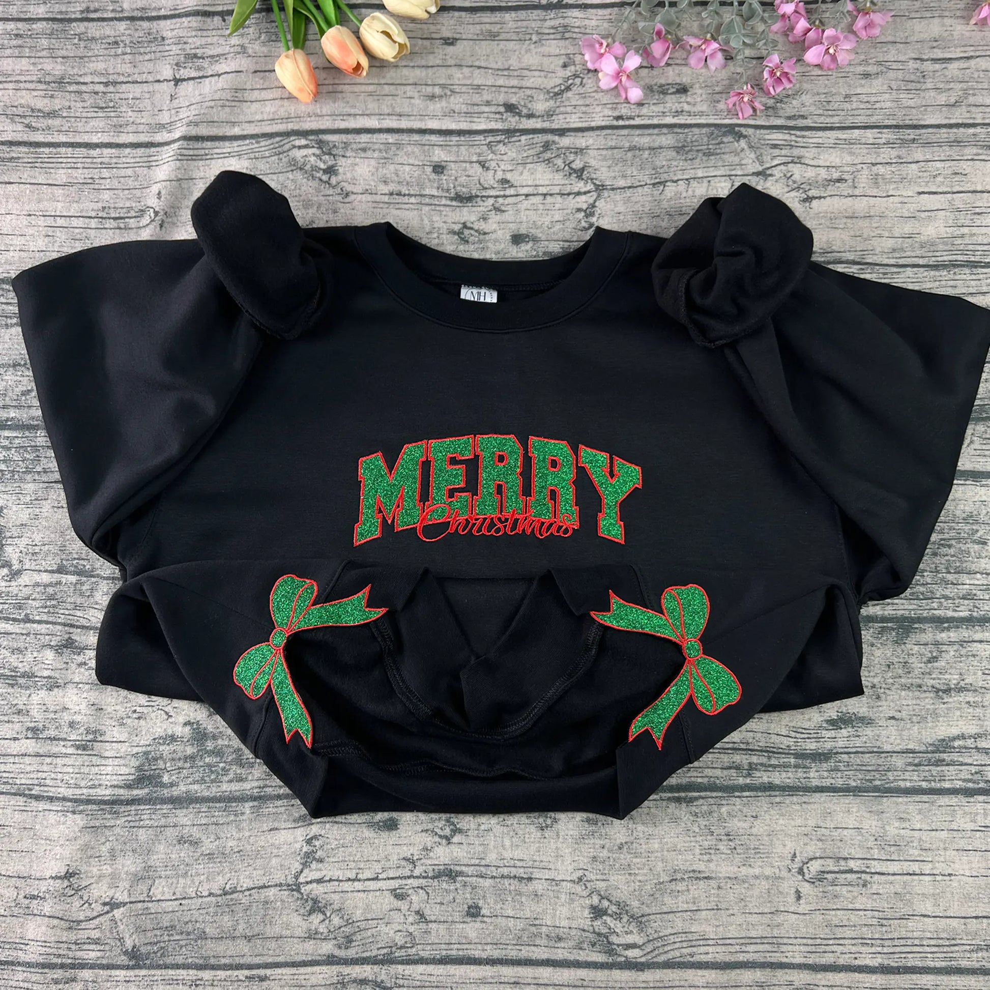 Holiday Glitter Merry Sweatshirt – Double Bow Embroidery