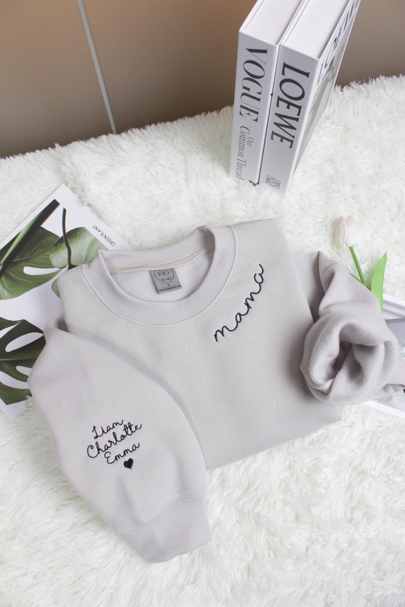 Embroidered Custom Mama Sweatshirt with Children Name on Sleeve