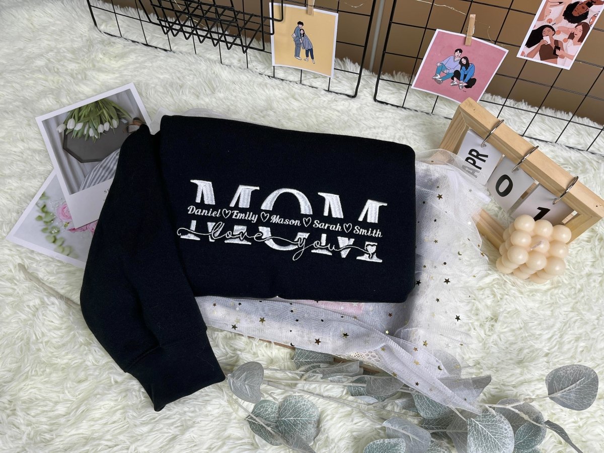 Mom Sweatshirt with Kid Names, Custom Embroider Mom Sweatshirt