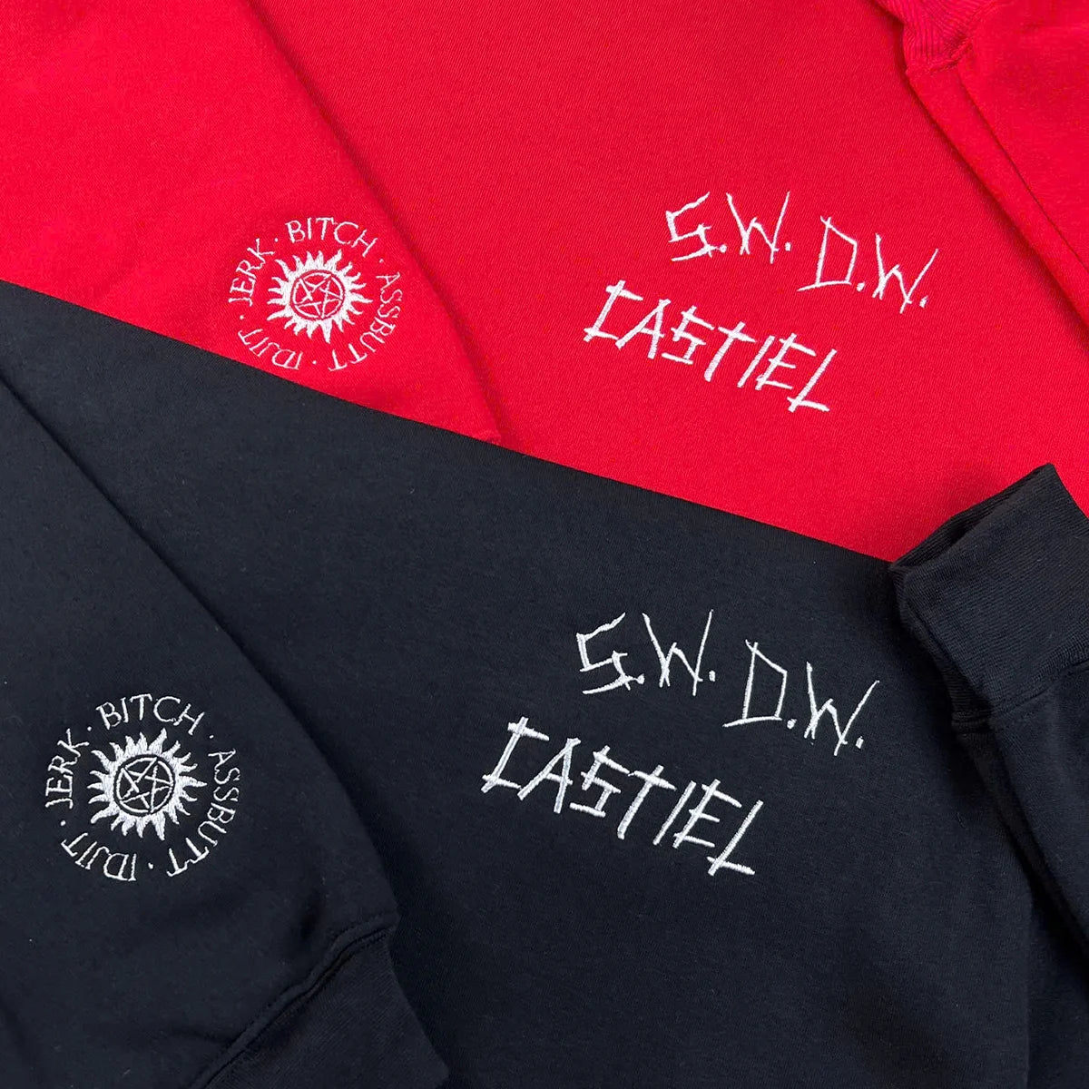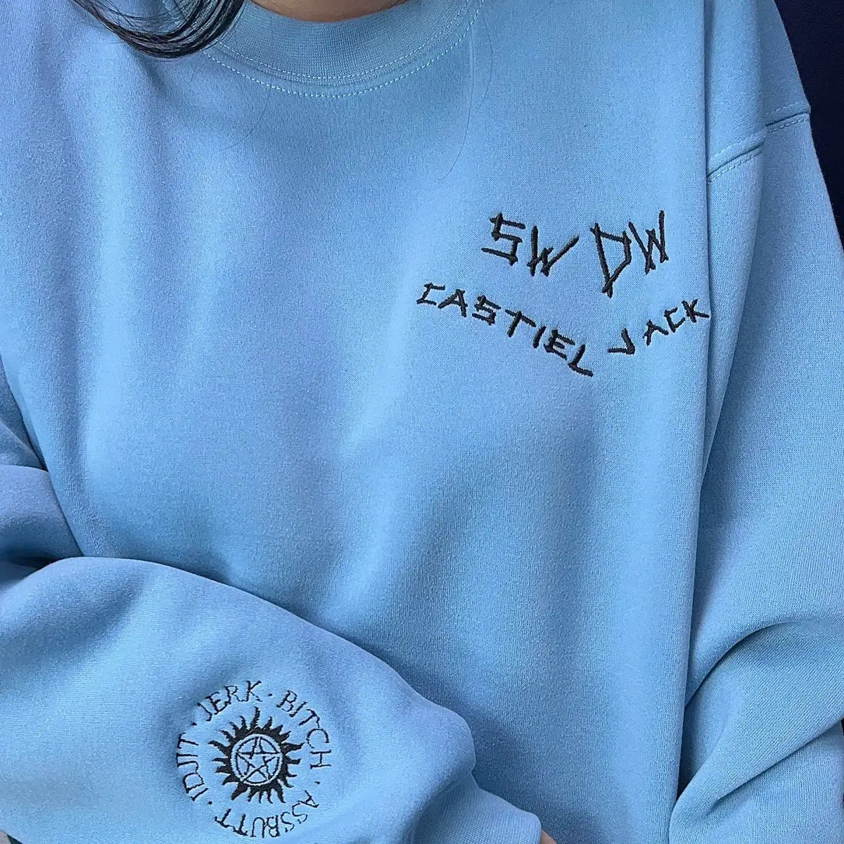 Supernatural Embroidered Sweatshirt – Dean, Sam, Castiel, Baby Car & Antipossession Symbol Hoodie – Fangirl Cosplay Jumper