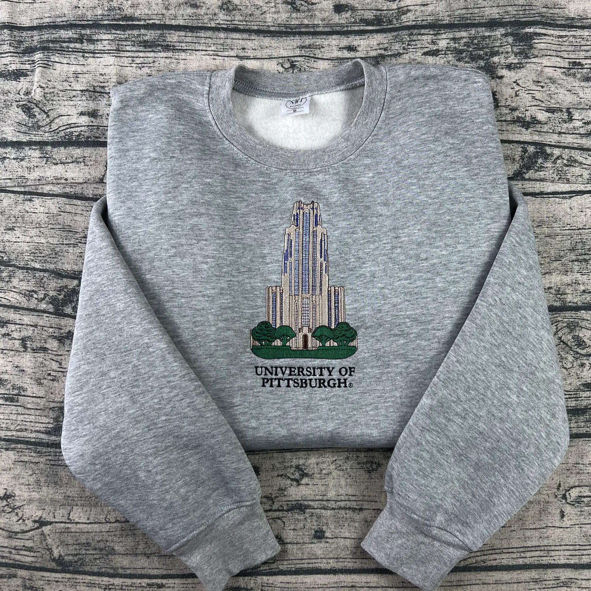 Inspired by classic American campus culture, our PITTSBURGH University Embroidered Sweatshirt brings a clean, vintage collegiate aesthetic without referencing any official trademarks. The chest embroidery features bold academia-style lettering — simple, timeless, and full of cozy school spirit.