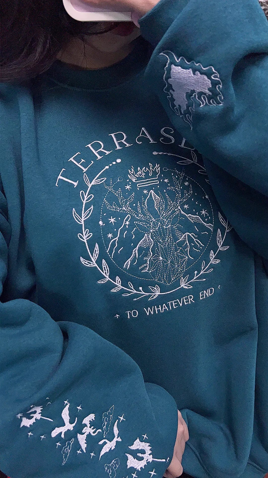 Carry the unbreakable promise of Terrasen with this “To Whatever End” Embroidered Sweatshirt — a piece crafted for those who feel deeply connected to loyalty, courage, and the quiet strength of fantasy realms.